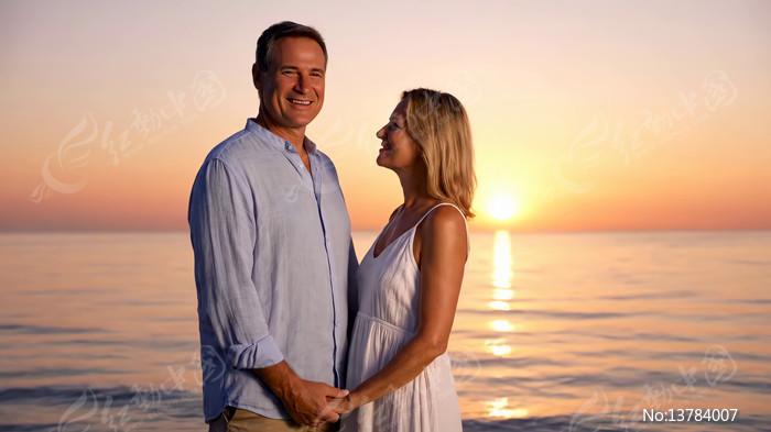 海边情侣日落牵手对视