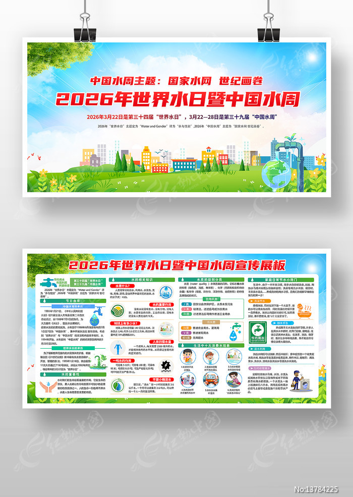 红动中国提供原创世界水日中国水周展板下载,作品以2026年中国水周为主题而设计,可作为2026年中国水周,中国水周宣传栏,2026世界水日,中国水周展板,保护水资源等主题图片使用,世界水日中国水周展板,编号13784225,格式PSD,尺寸6803x3402毫米,大小65.5 MB,欢迎会员进行下载。