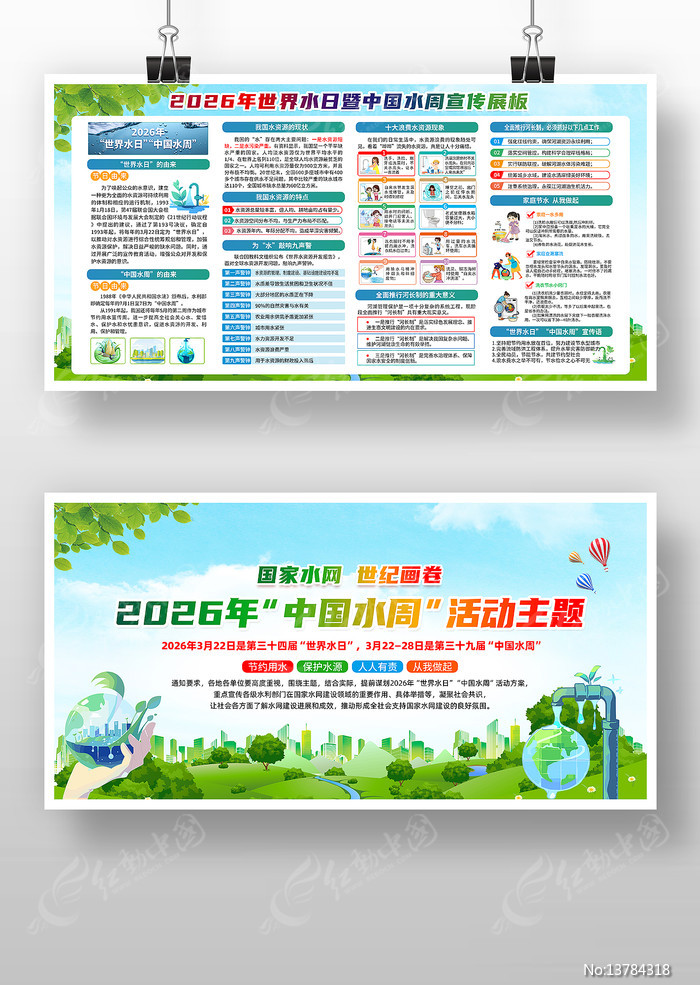 红动中国提供原创中国水周世界水日展板下载,作品以2026年中国水周为主题而设计,可作为2026年中国水周,中国水周宣传栏,2026世界水日,中国水周展板,保护水资源等主题图片使用,中国水周世界水日展板,编号13784318,格式PSD,尺寸6803x3402毫米,大小208.22 MB,欢迎会员进行下载。