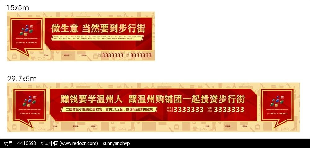 红动中国提供原创商业地产围墙广告下载,作品以围墙为主题而设计,可作为房地产海报,围墙广告,地产,金色,商业等主题图片使用,商业地产围墙广告,编号4410698,格式CDR,尺寸1500x500毫米,大小931.66 KB,欢迎会员进行下载。