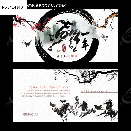 红动中国提供原创水墨中国风马年贺卡设计下载,作品以水墨中国风马年为主题而设计,可作为水墨中国风马年贺卡设计,2014艺术字设计,2014马年贺卡,公司企业贺卡,2014年贺卡等主题图片使用,水墨中国风马年贺卡设计,编号2414240,格式PSD,尺寸186x91毫米,大小8.87 MB,欢迎会员进行下载。