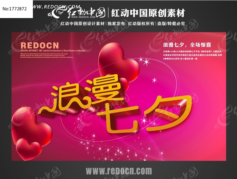 红动中国提供原创浪漫七夕海报素材下载下载,作品以七夕为主题而设计,可作为七夕优惠海报,浪漫七夕节,浪漫情人节,七夕立体字,情人节广告等主题图片使用,浪漫七夕海报素材下载,编号1772872,格式PSD,尺寸500x300毫米,大小18.94 MB,欢迎会员进行下载。
