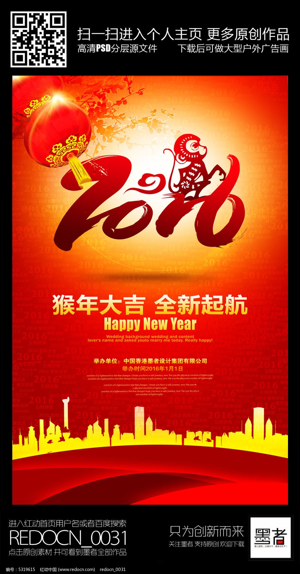 当前位置:设计网站>平面广告>海报>节日节气>红色喜庆创意2016猴年元旦新春海报设计红色喜庆创意2016猴年元旦新春海报设计