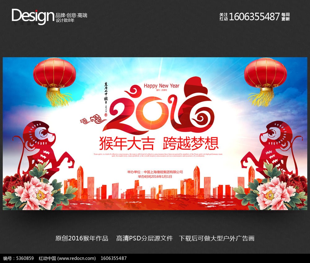 红动中国提供原创创意2016猴年大吉企业年会舞台背景设计下载,作品以企业年会背景图为主题而设计,可作为新年年会晚会素材,年终聚会背景图,企业年会背景图,元旦晚会背景图,2016猴年海报等主题图片使用,创意2016猴年大吉企业年会舞台背景设计,编号5360859,格式PSD,尺寸300x600毫米,大小91.57 MB,欢迎会员进行下载。