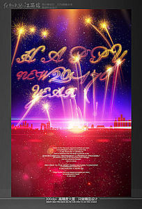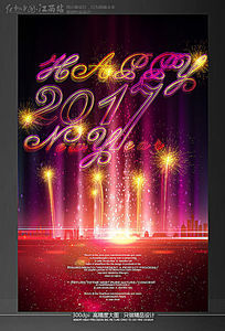 烟花炫光创意2017鸡年元旦新春宣传海报设计模板
