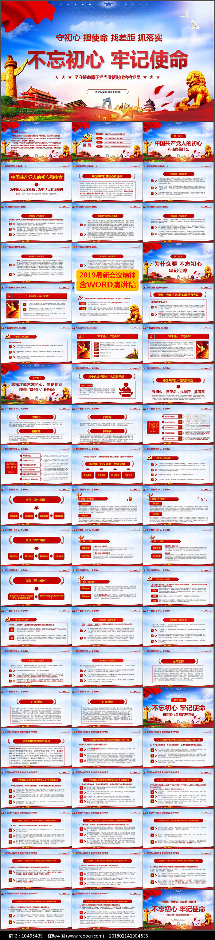 红动中国提供原创不忘初心牢记使命党建PPT模板下载,作品以不忘初心牢记使命为主题而设计,可作为不忘初心牢记使命主题教育PPT,不忘初心牢记使命ppt模板,不忘初心牢记使命PPT,不忘初心PPT模板,不忘初心PPT等主题PPT使用,不忘初心牢记使命党建PPT模板编号10495439,格式pptx,大小13.02 MB,欢迎会员进行下载。
