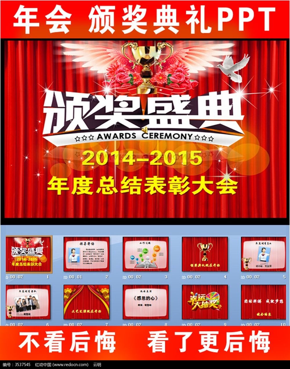 红动中国提供原创颁奖典礼表彰PPT模板下载,作品以颁奖典礼表彰为主题而设计,可作为颁奖典礼表彰PPT模板,优秀员工表彰PPT,颁奖典礼PPT,颁奖盛典PPT,颁奖视频PPT等主题PPT使用,颁奖典礼表彰PPT模板编号3537545,格式ppt,大小7.67 MB,欢迎会员进行下载。