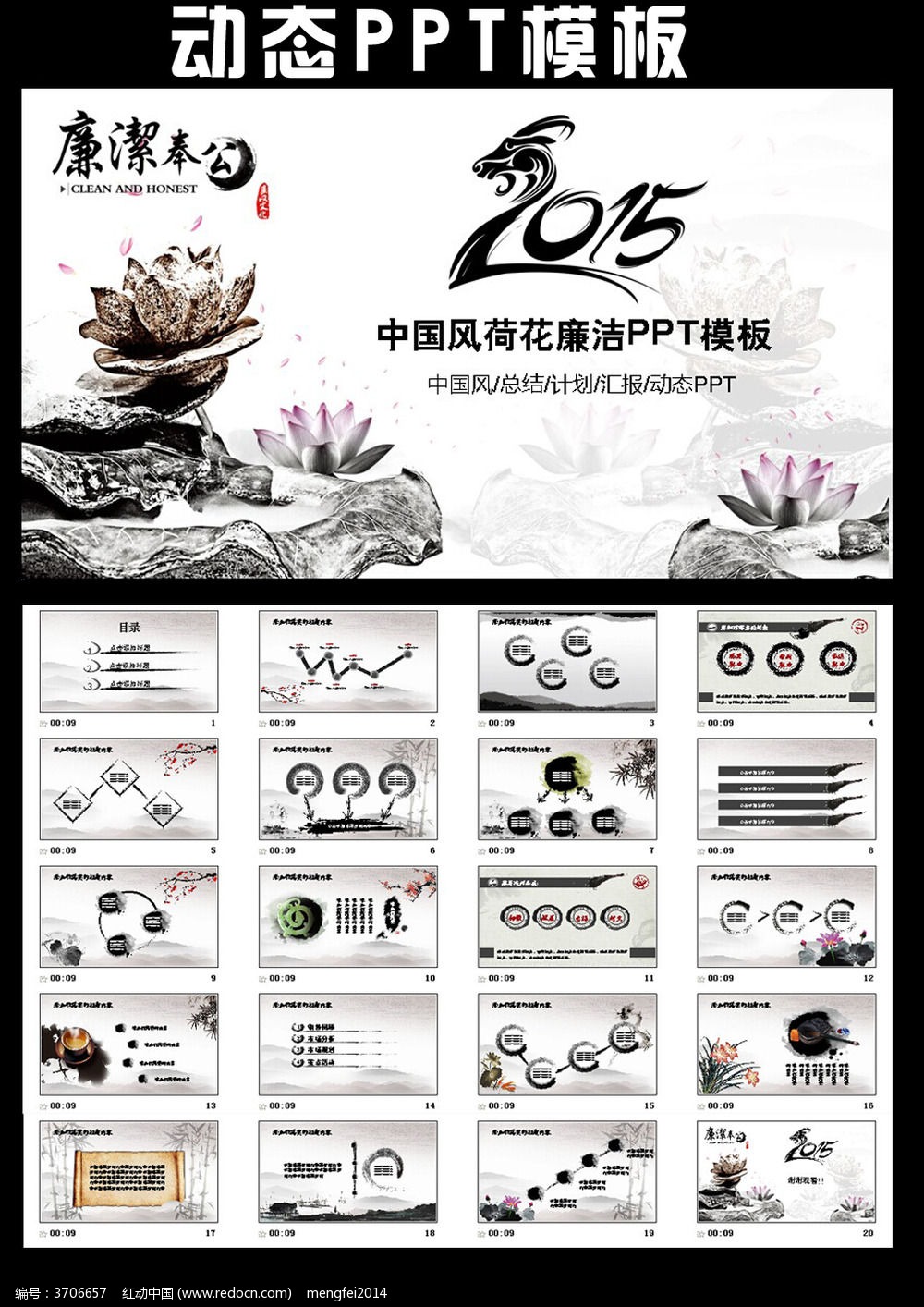 红动中国提供原创荷花廉洁奉公PPT模板下载,作品以荷花廉洁奉公为主题而设计,可作为2015中国风水墨荷花简洁最新简洁荷花廉洁奉公PPT模板设计下载,精品大气PPT模板设计下载,ppt背景图片素材,ppt背景模板,ppt背景图片等主题PPT使用,荷花廉洁奉公PPT模板编号3706657,格式ppt,大小50.73 MB,欢迎会员进行下载。