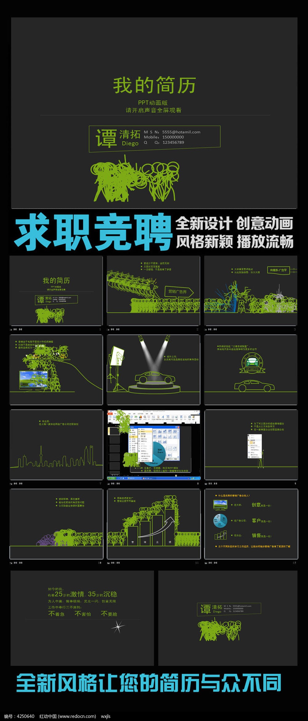 红动中国提供原创创意个人求职应聘简历PPT模板下载,作品以创意简历为主题而设计,可作为求职简历ppt范文,创意简历,个人简历,简历动画,时尚简历等主题PPT使用,创意个人求职应聘简历PPT模板编号4250640,格式ppt,大小16.44 MB,欢迎会员进行下载。