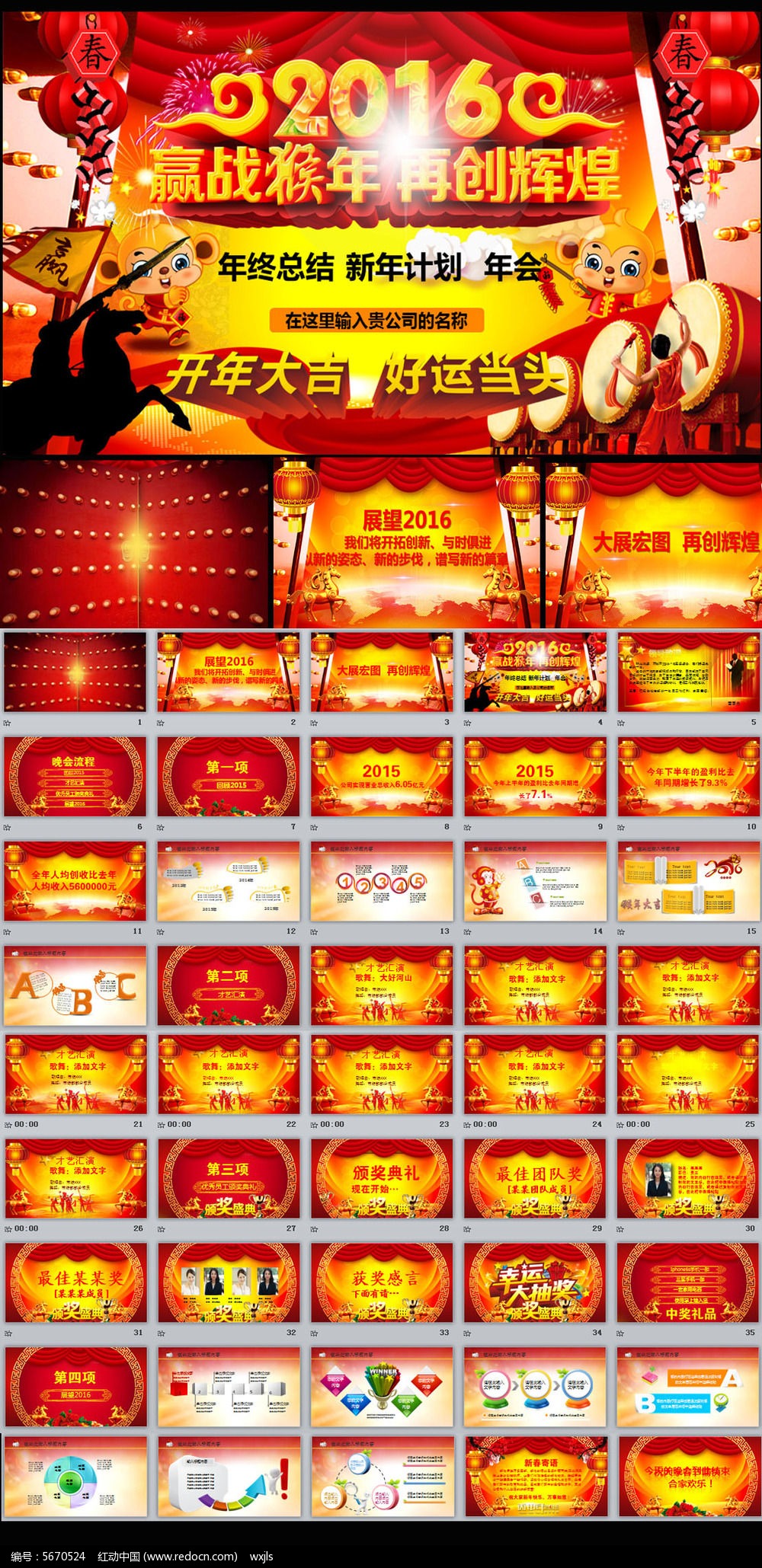 红动中国提供原创2016赢战猴年年终工作总结颁奖典礼年会PPT下载,作品以年终总结为主题而设计,可作为颁奖典礼,工作计划,公司年会,年终总结,企业年会等主题PPT使用,2016赢战猴年年终工作总结颁奖典礼年会PPT编号5670524,格式ppt,大小40.12 MB,欢迎会员进行下载。