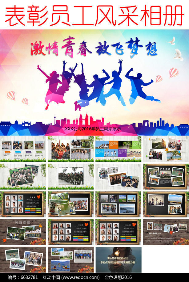 红动中国提供原创表彰员工风采相册PPT模板下载,作品以员工风采相册为主题而设计,可作为企业员工相册,员工风采相册,表彰图片,表彰员工,企业表彰等主题PPT使用,表彰员工风采相册PPT模板编号6632781,格式pptx,大小19.44 MB,欢迎会员进行下载。