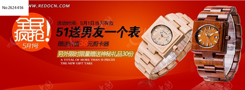 红动中国提供原创淘宝手表促销海报下载,作品以淘宝为主题而设计,可作为劳动节,时尚表,送礼品,促销,海报等主题图片使用,淘宝手表促销海报,编号2624456,格式PSD,尺寸950x350像素,大小1009.72 KB,欢迎会员进行下载。