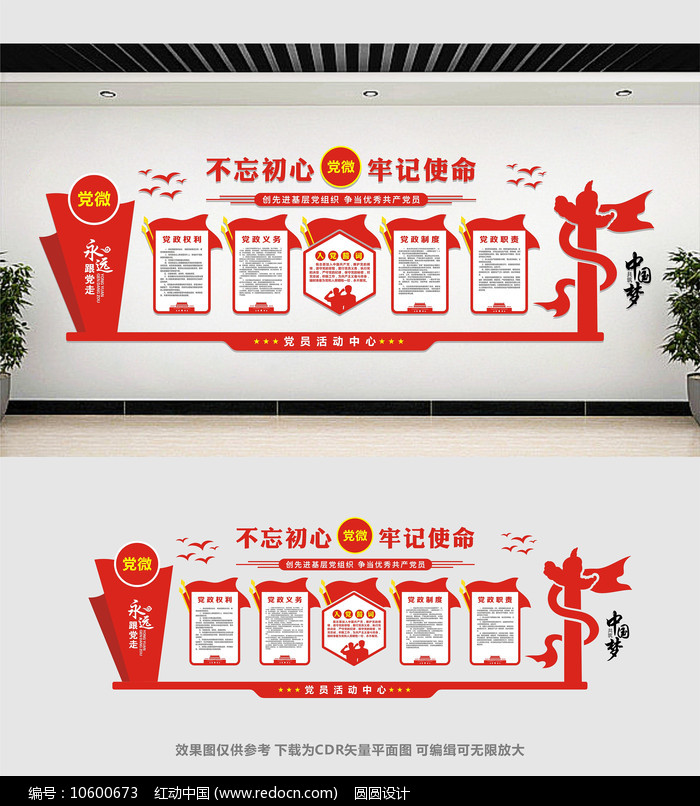 红动中国提供原创精品党建文化墙设计下载,作品以党建为主题而设计,可作为党员活动中心 ,党建背景墙,党建活动室,党建文化墙,党建形象墙等主题图片使用,精品党建文化墙设计,编号10600673,格式CDR,尺寸1500x500毫米,大小1.49 MB,欢迎会员进行下载。