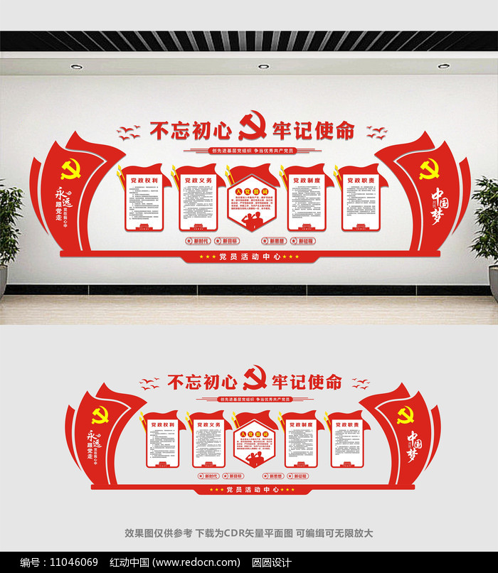 红动中国提供原创党建文化墙展板设计下载,作品以党建为主题而设计,可作为党员活动中心 ,党建背景墙,党建活动室,党建文化墙,党建形象墙等主题图片使用,党建文化墙展板设计,编号11046069,格式CDR,尺寸1500x500毫米,大小1.38 MB,欢迎会员进行下载。