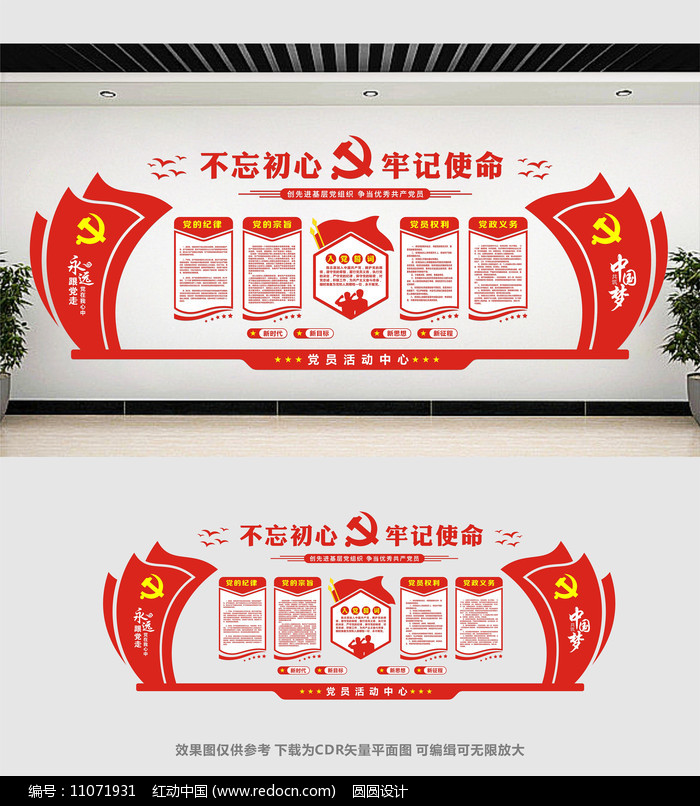 红动中国提供原创党建文化墙展板设计下载,作品以党建为主题而设计,可作为党员活动中心,党建背景墙,党建活动室,党建文化墙,党建形象墙等主题图片使用,党建文化墙展板设计,编号11071931,格式CDR,尺寸1500x500毫米,大小1.03 MB,欢迎会员进行下载。