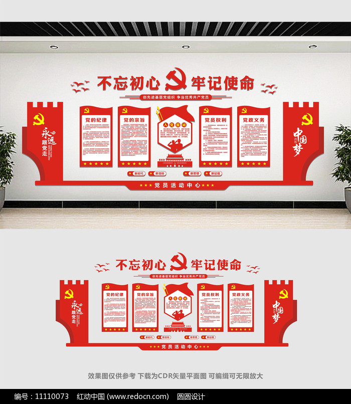 红动中国提供原创党建宣传文化墙设计模板下载,作品以党建为主题而设计,可作为党员活动中心,党建背景墙,党建活动室,党建文化墙,党建形象墙等主题图片使用,党建宣传文化墙设计模板,编号11110073,格式CDR,尺寸1500x500毫米,大小1.56 MB,欢迎会员进行下载。