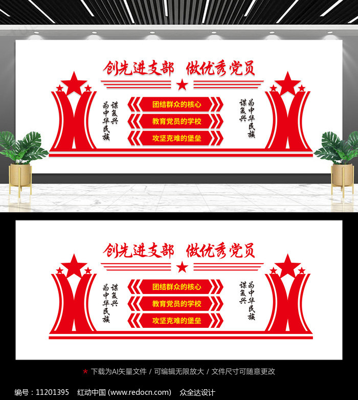 红动中国提供原创党支部标语文化墙设计下载,作品以党支部 为主题而设计,可作为党支部文化墙 ,党员活动中心,党支部形象墙,党支部宣传栏,党建背景墙等主题图片使用,党支部标语文化墙设计,编号11201395,格式AI,尺寸1000x370毫米,大小1.11 MB,欢迎会员进行下载。