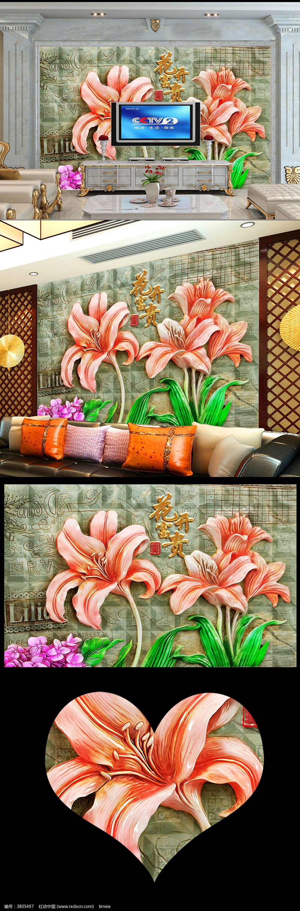 当前位置:设计网站>平面广告>背景墙|装饰画>背景墙>立体浮雕壁画百合花开电视背景墙立体浮雕壁画百合花开电视背景墙