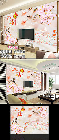 玉雕发财树福字电视背景墙