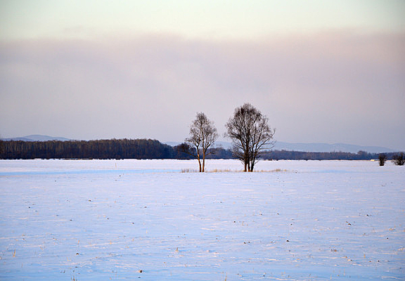 雪原树林暮色