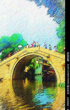 西塘风景建筑画